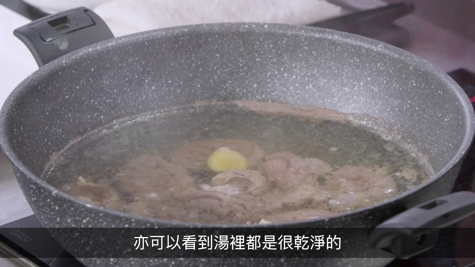 飛水半小時後,基本上湯汁頗清澈乾淨。(節目截圖:《Gi味俱全》)