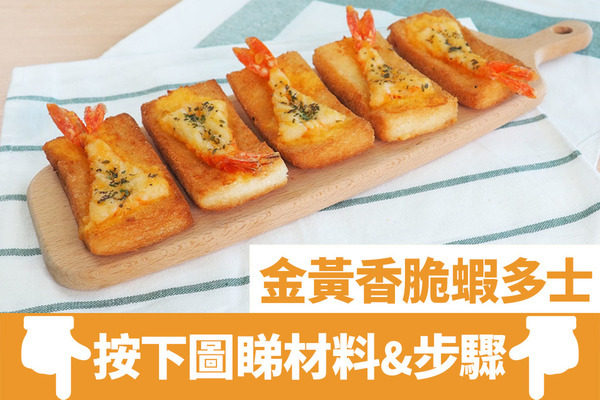 傳統以蝦膠整成的蝦多士便吃得多,而原隻的蝦多士原來是酒樓懷舊的上等菜式。這次便教大家整原隻的蝦多士,只需要3個步驟,15分鐘便能完成,真的非常方便啊!