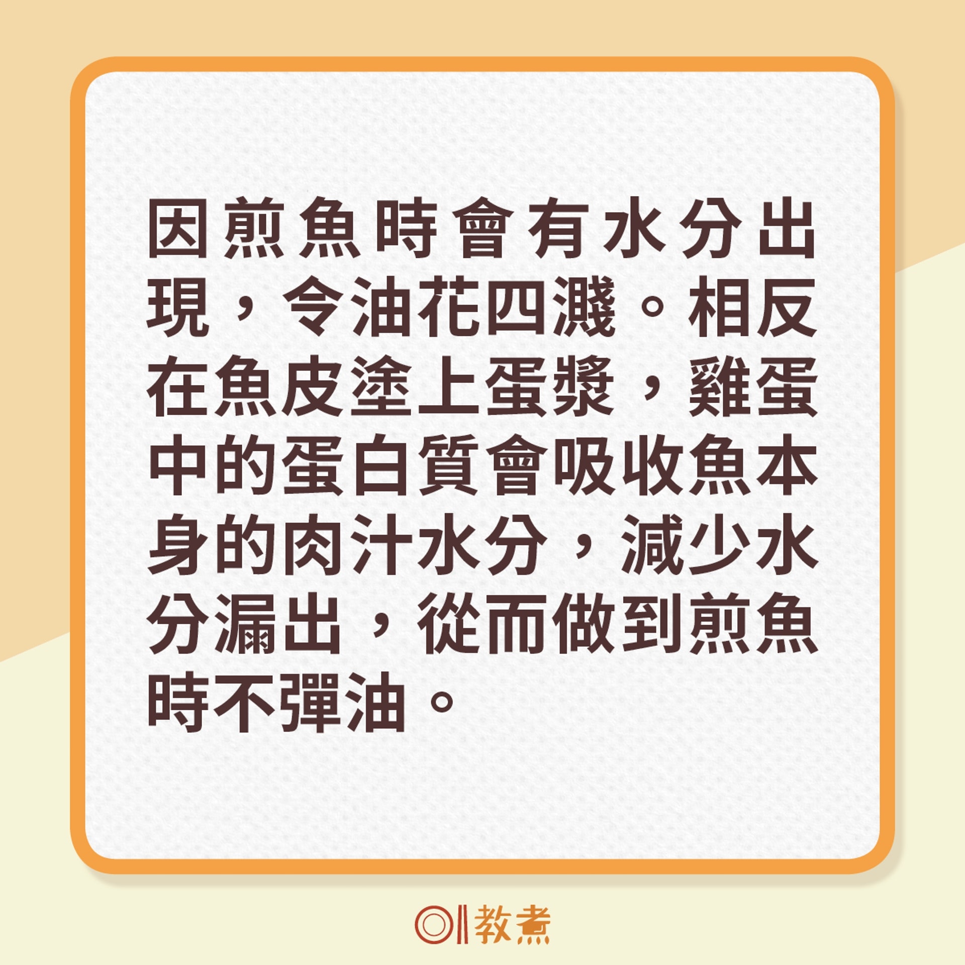 早前大廚雷啟裕也分享了煎魚不破皮的心得,煎魚前原來會加蛋液,不妨試試。