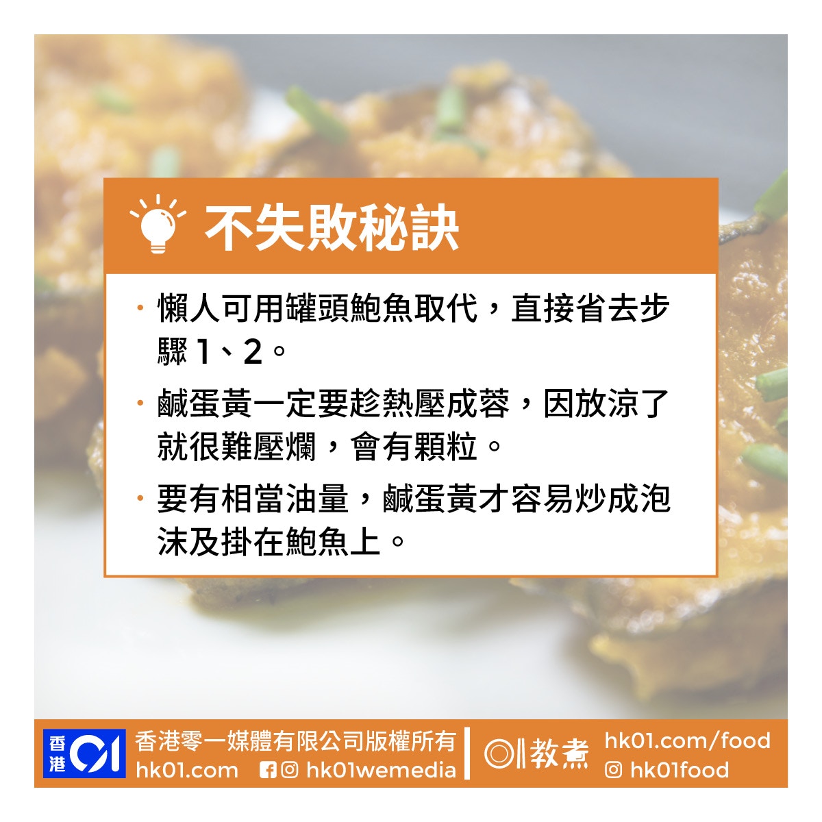 [烹調心得] 轉載 :【鮑魚食譜】黃金鮑魚多做1步香口彈牙【台灣美食】揭台式、黃金泡菜製作秘訣【蒸水蛋食譜】星星水蛋嫩滑秋葵脫毛有秘訣 |