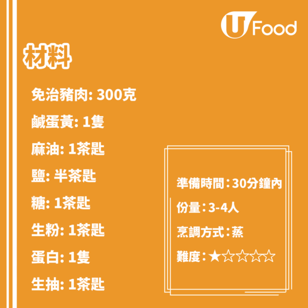 晚餐食譜 8. 鹹蛋蒸肉餅