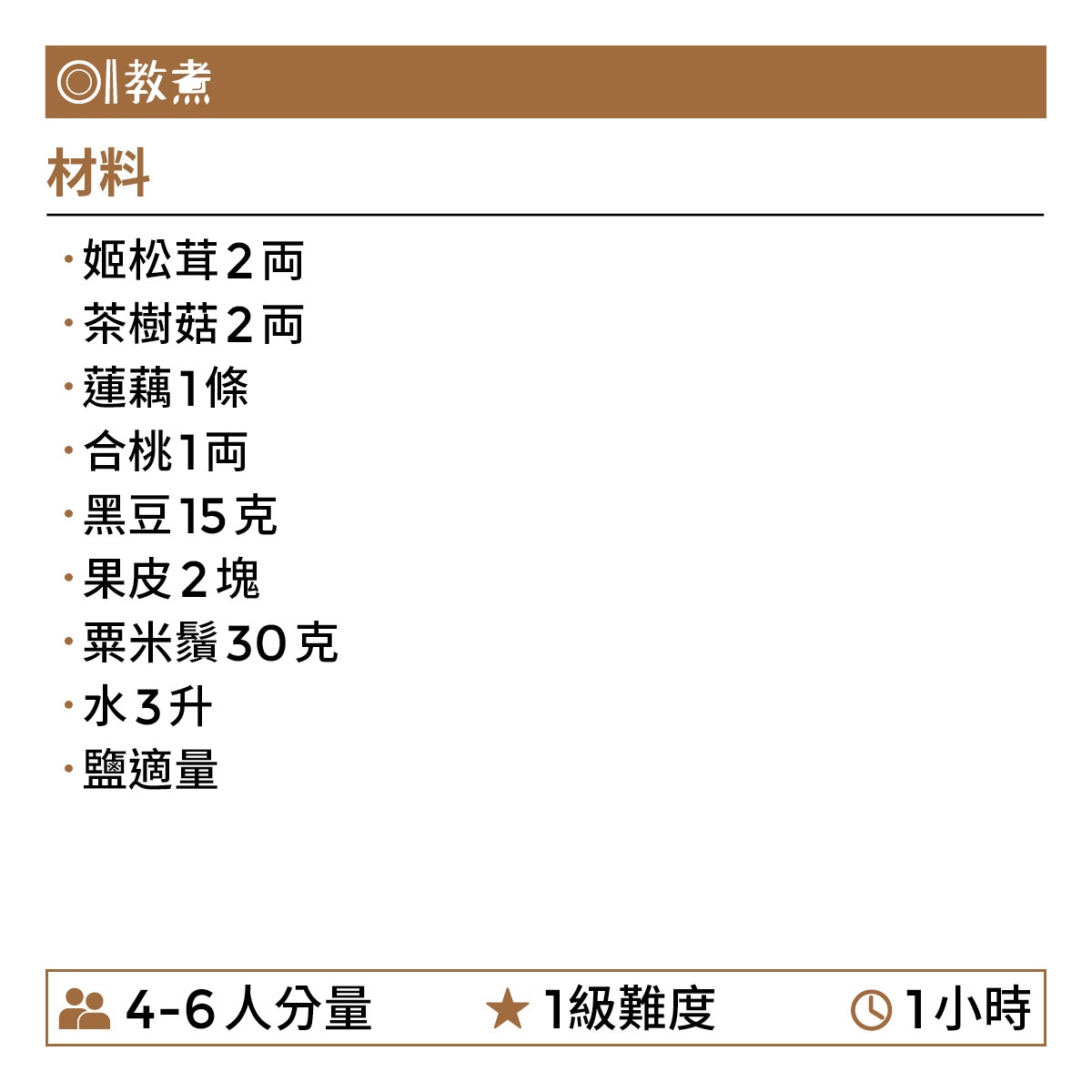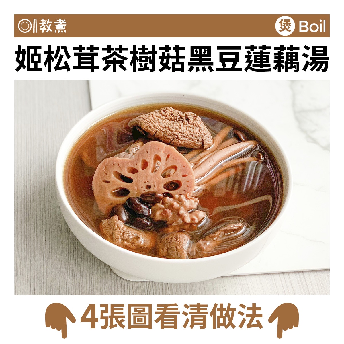 姬松茸茶樹菇黑豆蓮藕湯食譜