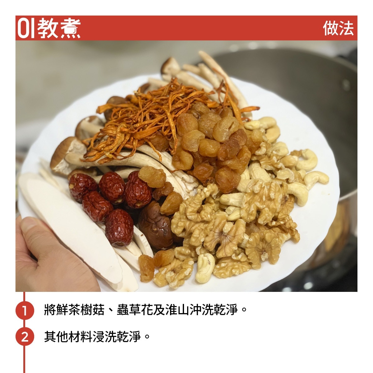 茶樹菇蟲草花杞子圓肉湯有健脾補腎、有益氣血的功效,適合體質虛弱人士飲用。此湯一星期可飲用1-2湯碗。