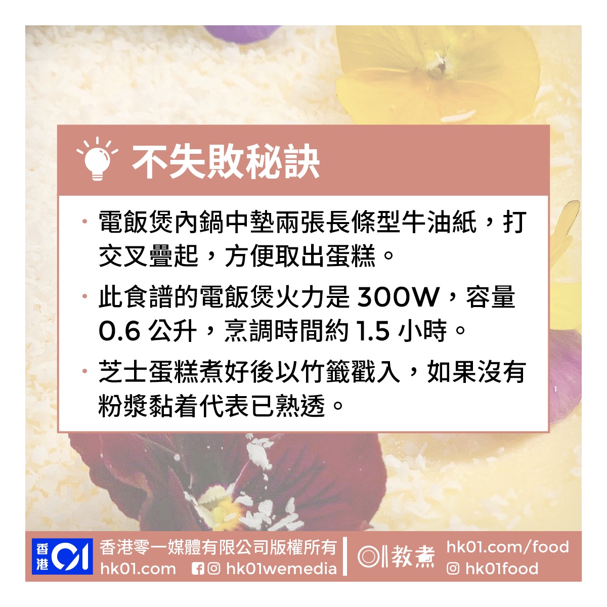 [食譜分享] 轉載 :【母親節2021】蒸食譜糕點甜品15款 電飯煲免焗蛋糕輕鬆零失敗【同場加映】清蒸好吃的10大秘訣