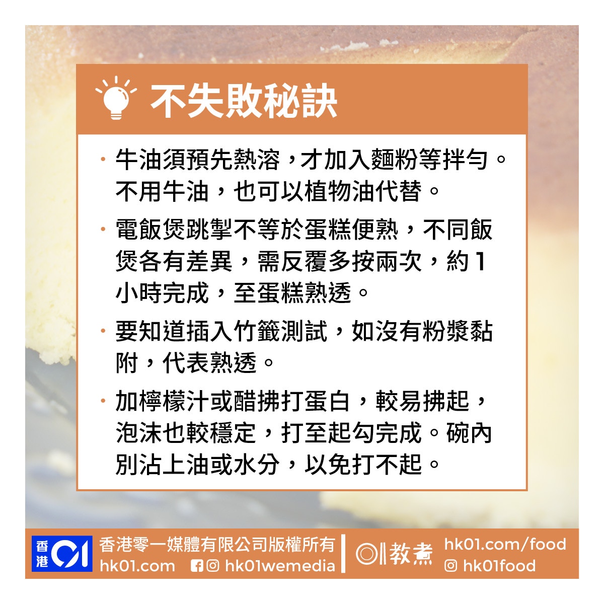電飯煲古早味蛋糕︰鬆軟綿密滿蛋香 比焗爐方便2大優點!