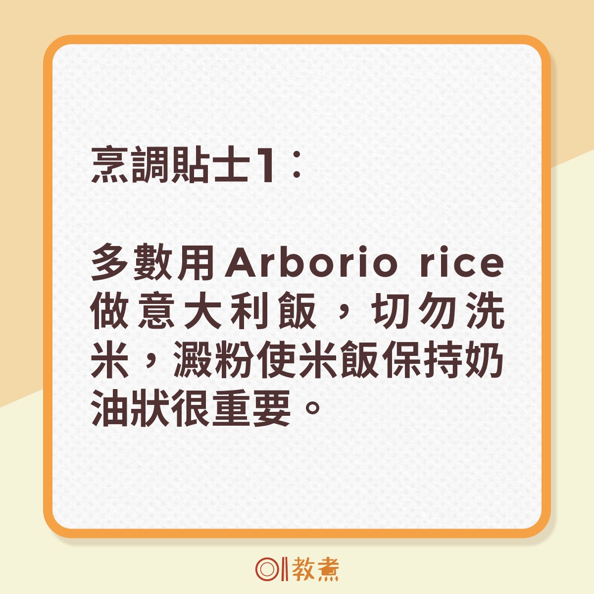 最基本及正宗的意大利飯是如何煉成?烹調貼士助成功煮出完美的意大利飯,請按下圖了解︰