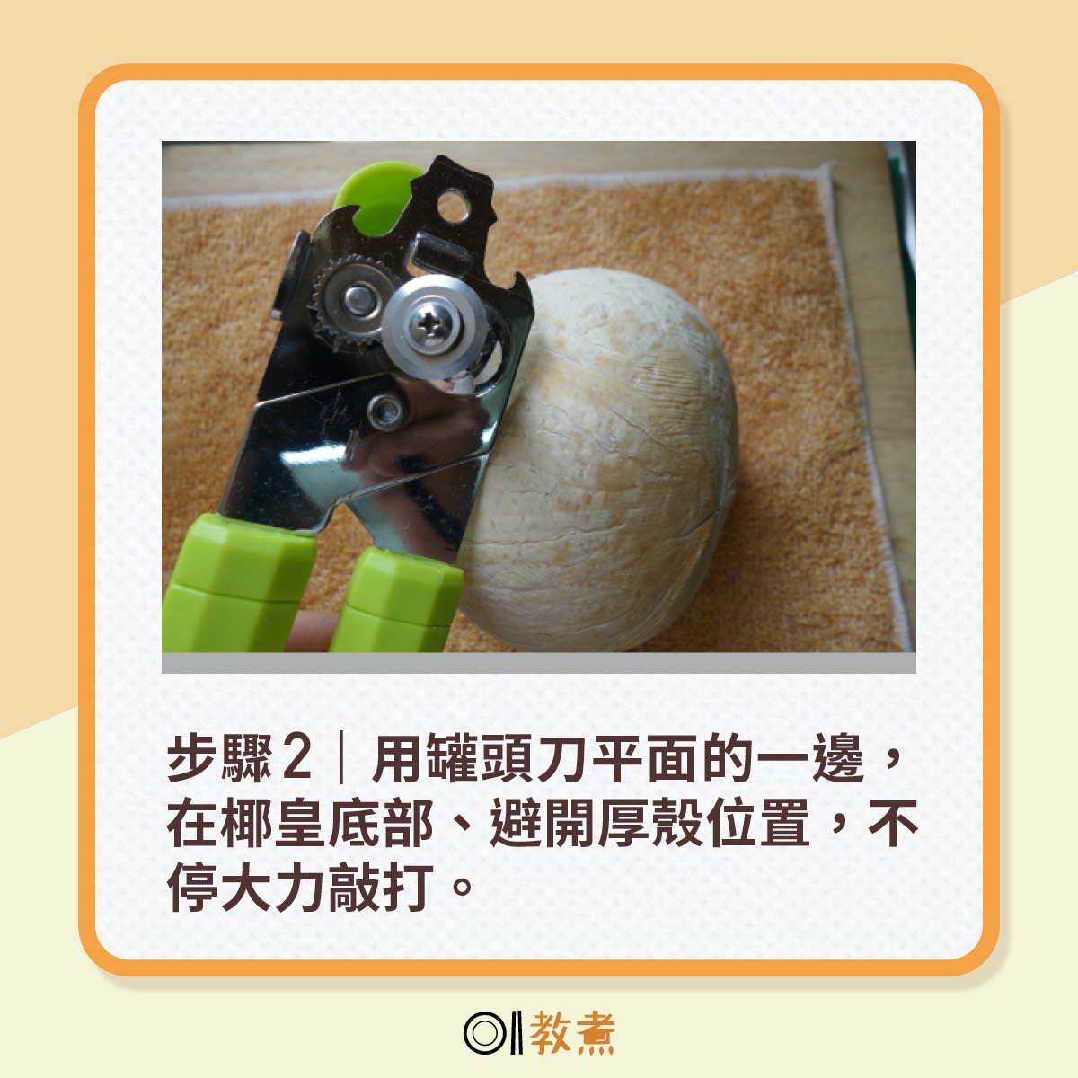 按圖看罐頭刀開椰皇完整步驟及貼士: