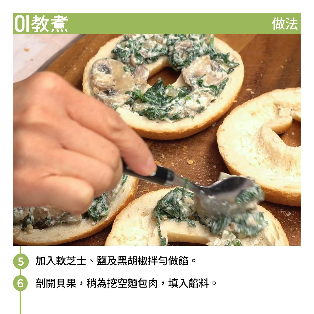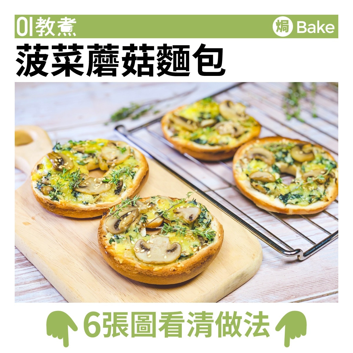 【素食食譜】菠菜蘑菇麵包芝香餡滿 Bagel升級變Pizza外脆內軟!