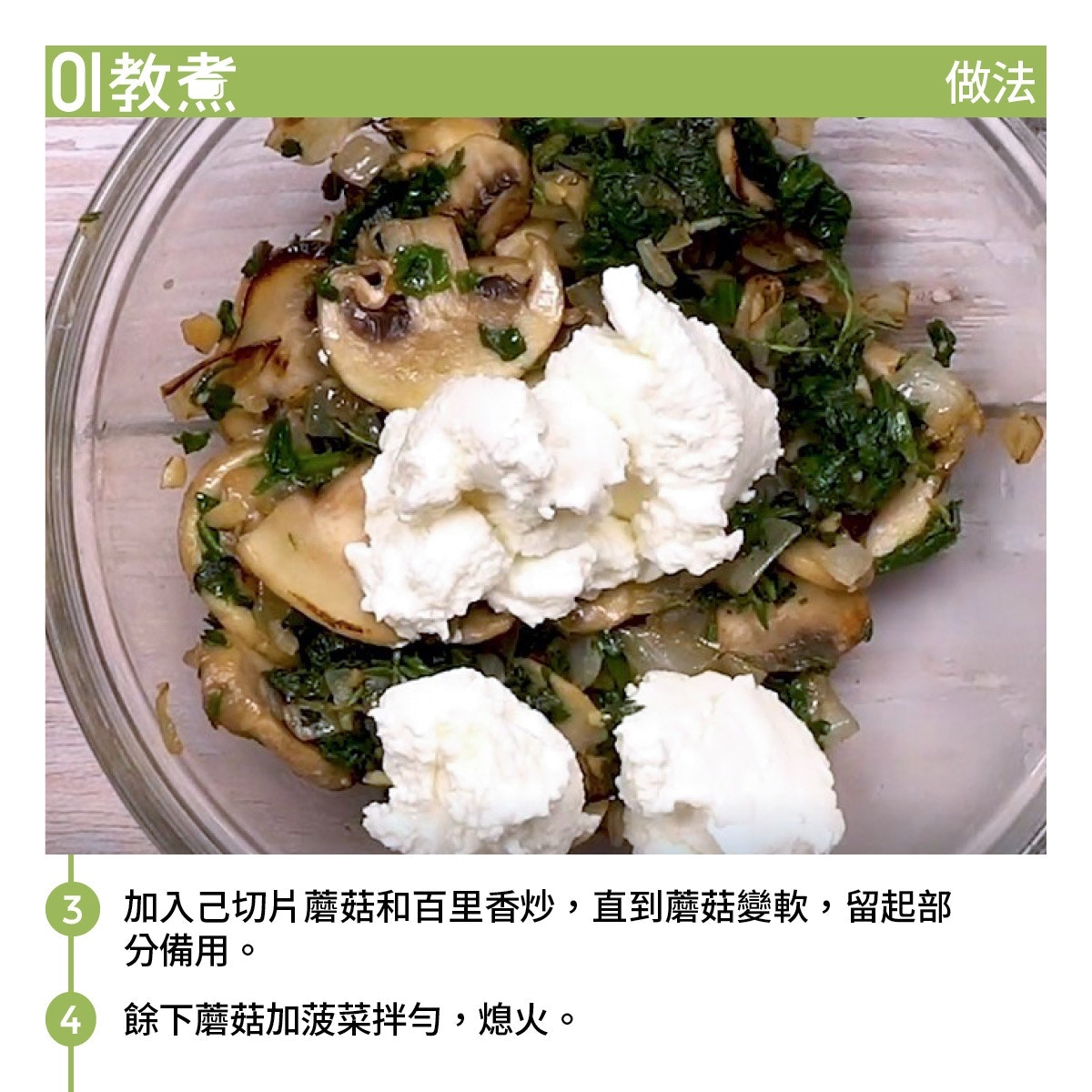 菠菜蘑菇麵包食譜