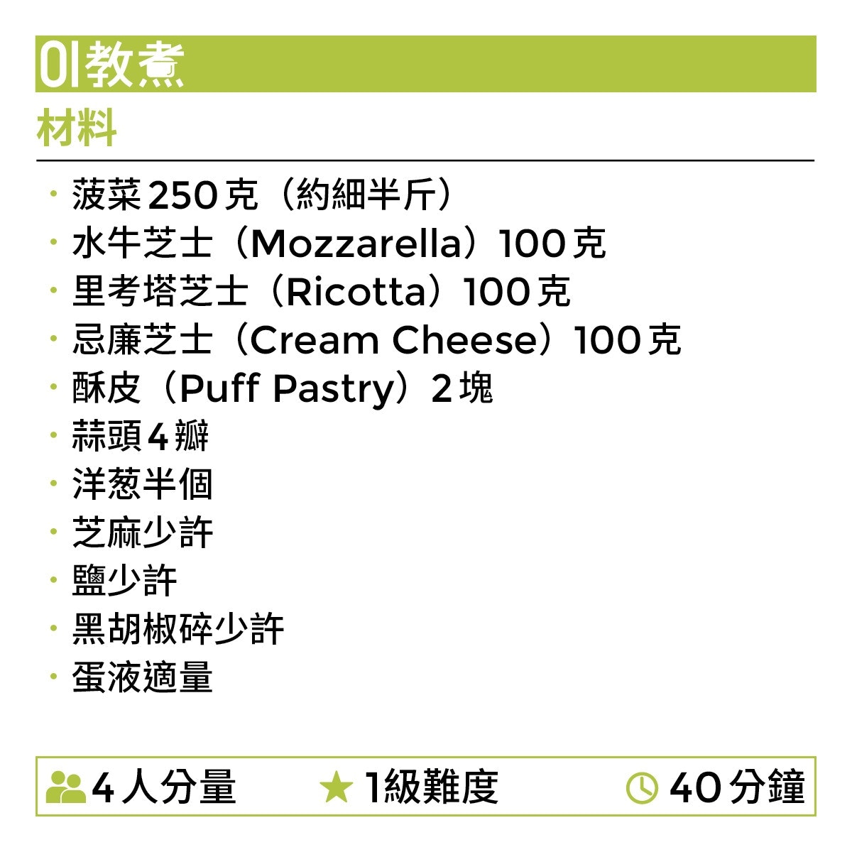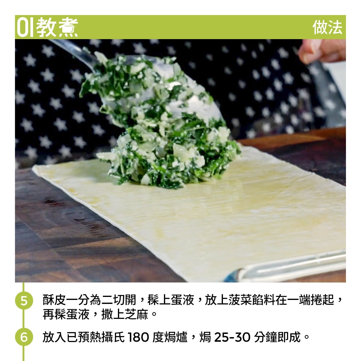 菠菜芝士酥皮卷食譜