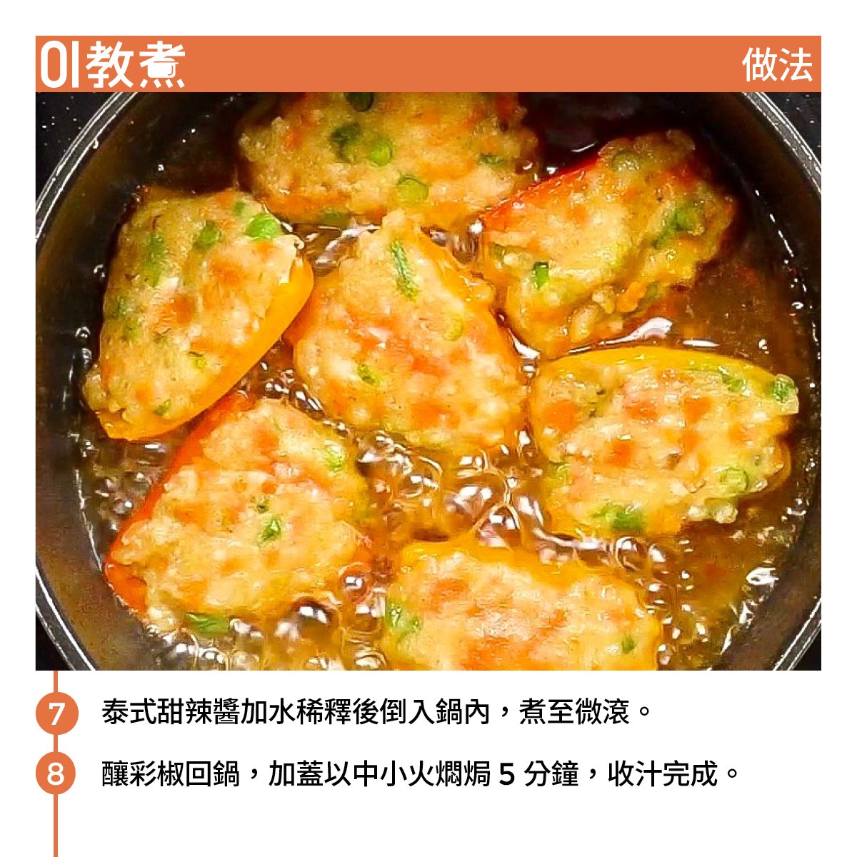 【素食食譜】豆腐釀彩椒配泰式甜辣醬 豆腐當魚滑素做煎釀三寶