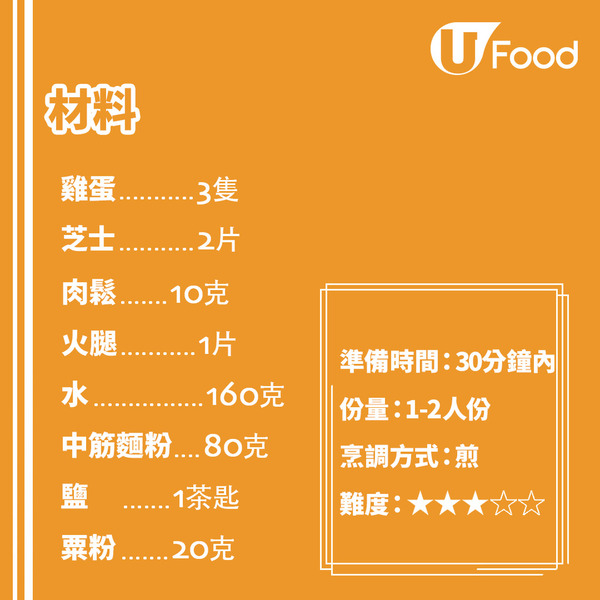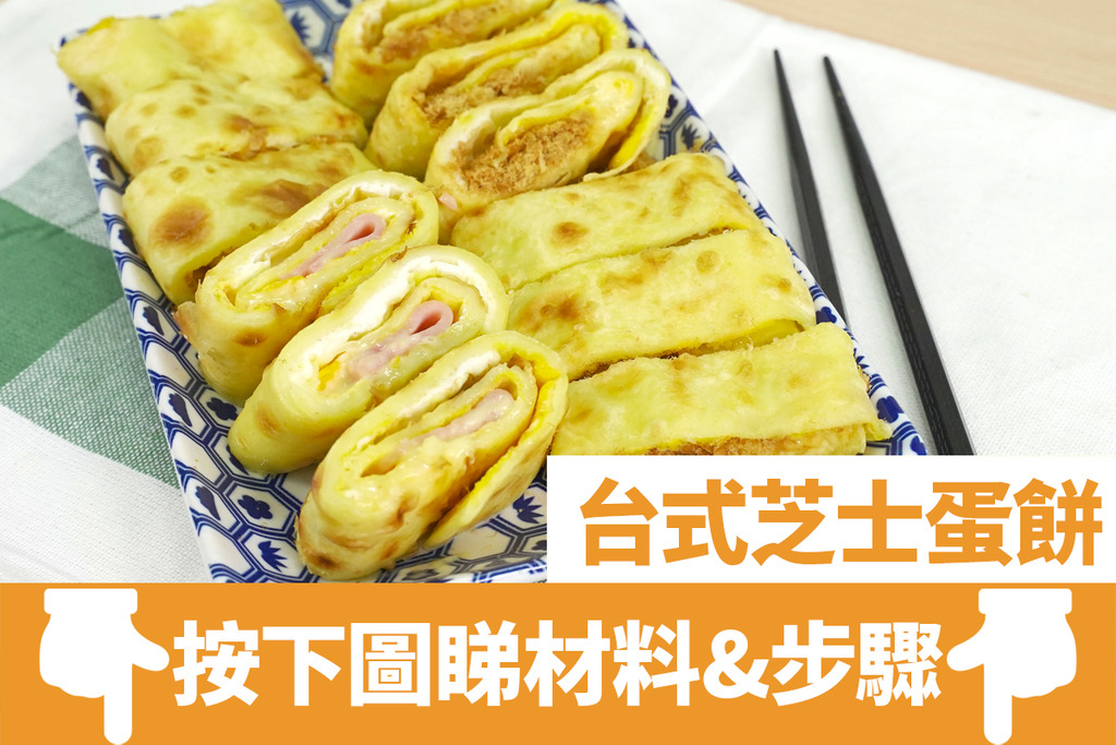 每次去台灣旅行,早餐都一定要食返個蛋餅,蛋餅餅皮Q彈,蛋味香濃。在家自製蛋餅亦十分簡單,更可按個人口味配上不同配料,這次就教大家一次製作肉鬆及火腿口味,煎完上桌切開更有半溶芝士效果!