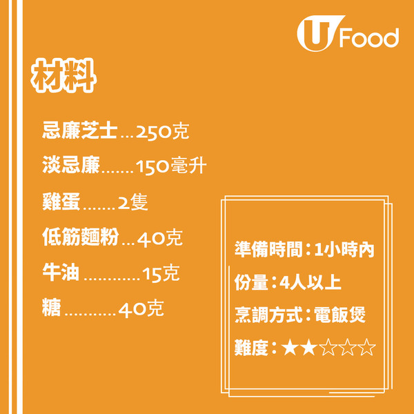 近年流行電飯煲焗蛋糕,這款免焗日式芝士蛋糕一樣可以用電飯煲製作,材料和製作方法簡單,而且芝士味香濃,適合各位懶人新手入廚!