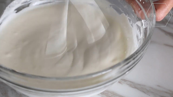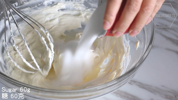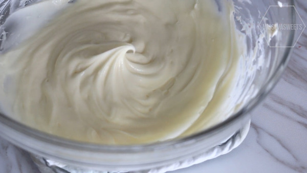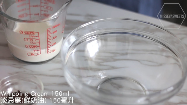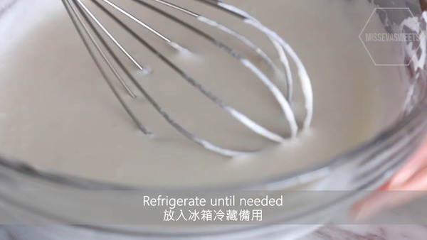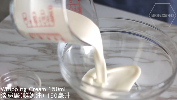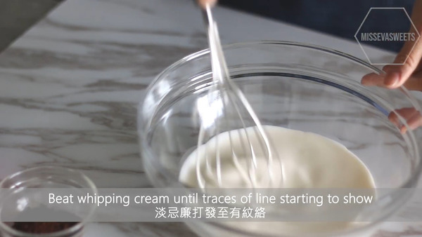 3. 淡忌廉打發至有紋路,放入雪櫃冷藏備用