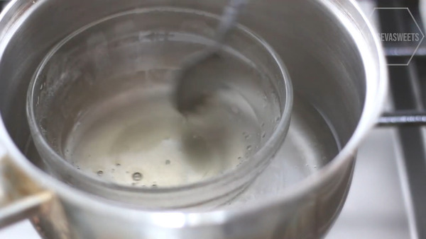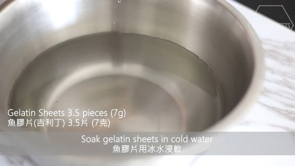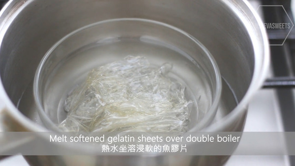 4. 用冰水把魚膠片浸軟,放入熱水中坐溶