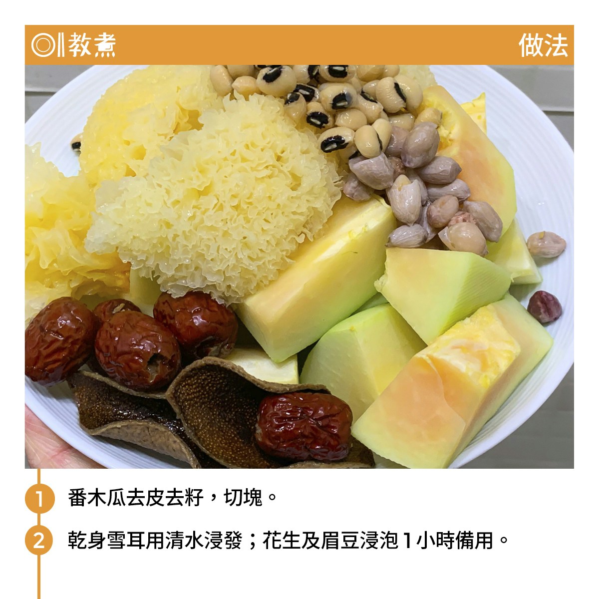 【去濕湯水食譜】花生眉豆木瓜雪耳湯 春天保健去濕健脾潤肺消滯