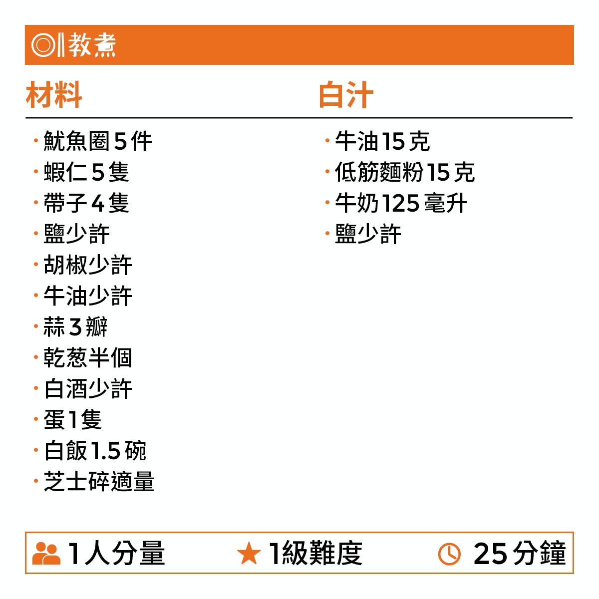 白汁焗海鮮飯食譜