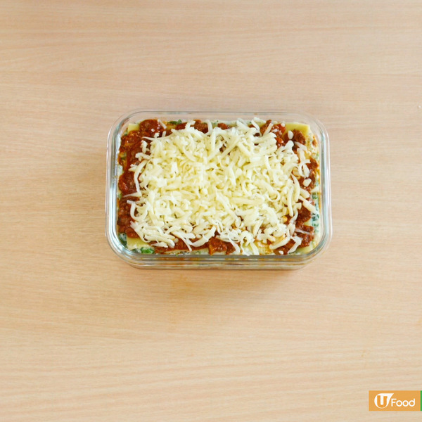 5. 最後面頭放水牛芝士,蓋上錫紙,190度氣炸25分鐘即成。