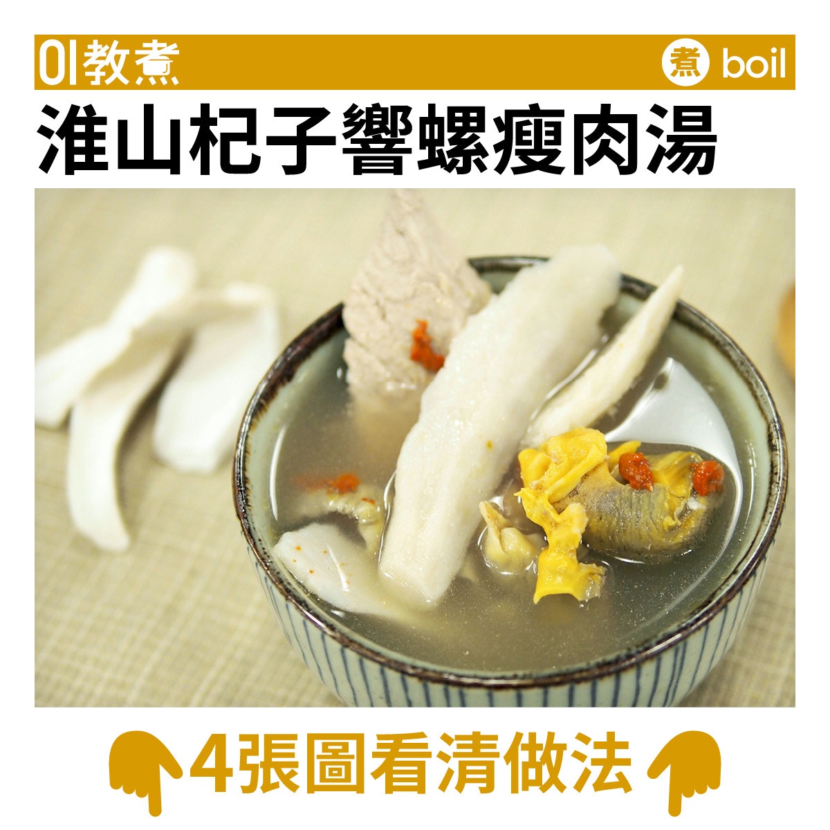 【健康湯水】淮山杞子響螺瘦肉湯 止咳潤肺補而不燥