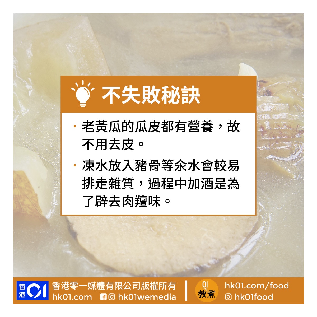 豬𦟌:老黃瓜薏米豬𦟌湯、蟲草花螺頭豬𦟌湯