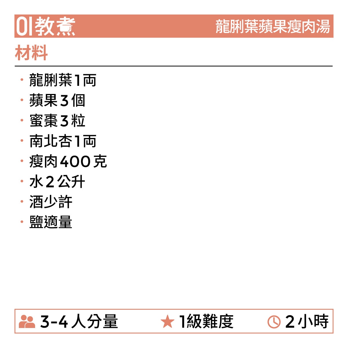 龍脷葉蘋果瘦肉湯食譜