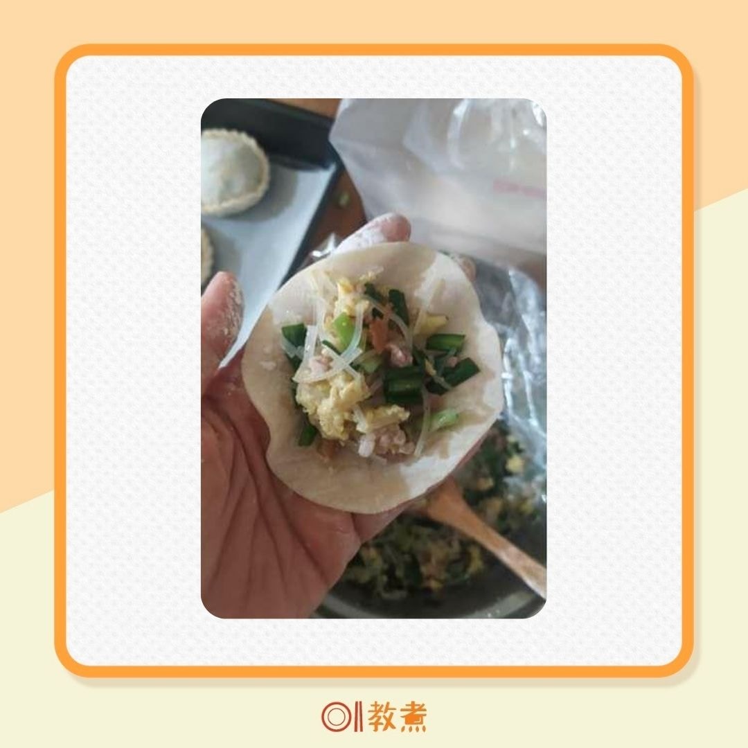 廚藝公社社員艾蘇美分享:之前買了一把韭菜,本來想來包水餃,但看看爆滿的冰格……已經沒有地方可以讓我冰包好的水餃。乾脆來做很久沒做的韭菜盒給家人當點心吃!