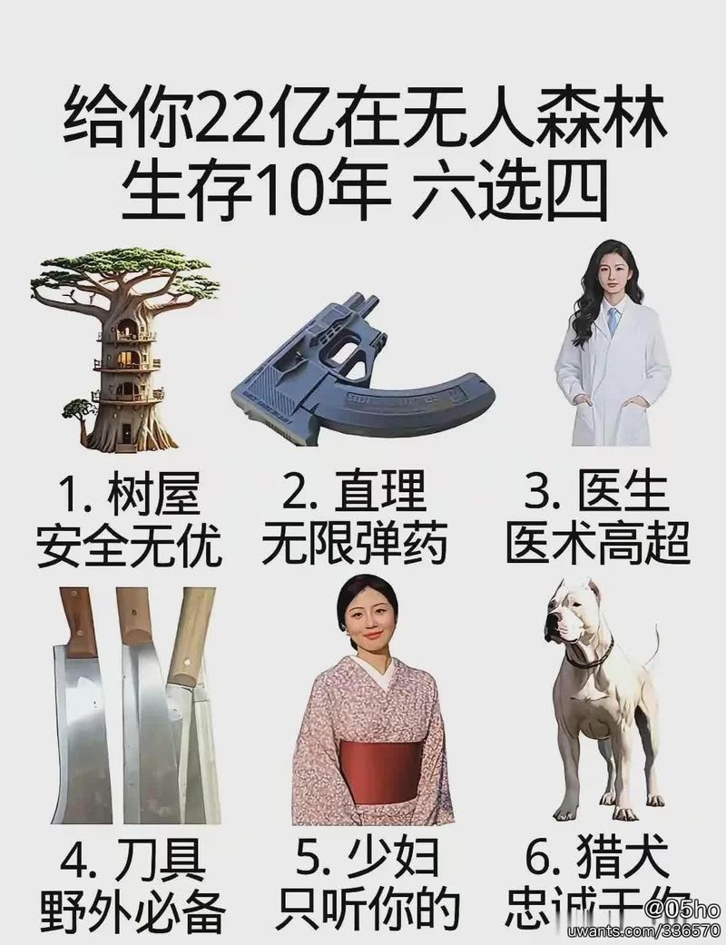 在無人森林里生活10年,6選4,你會怎麼選?
